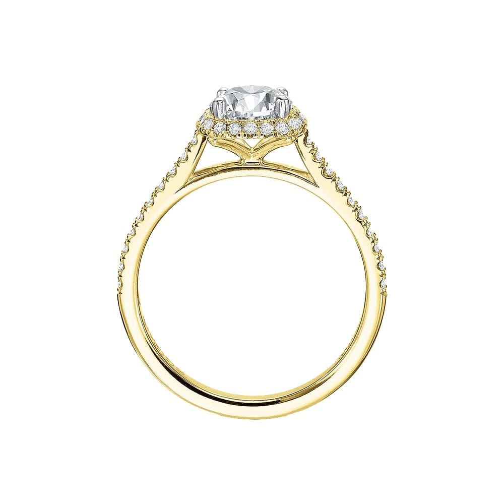 18k yellow gold Elege diamond halo engagement ring by Precision Set.