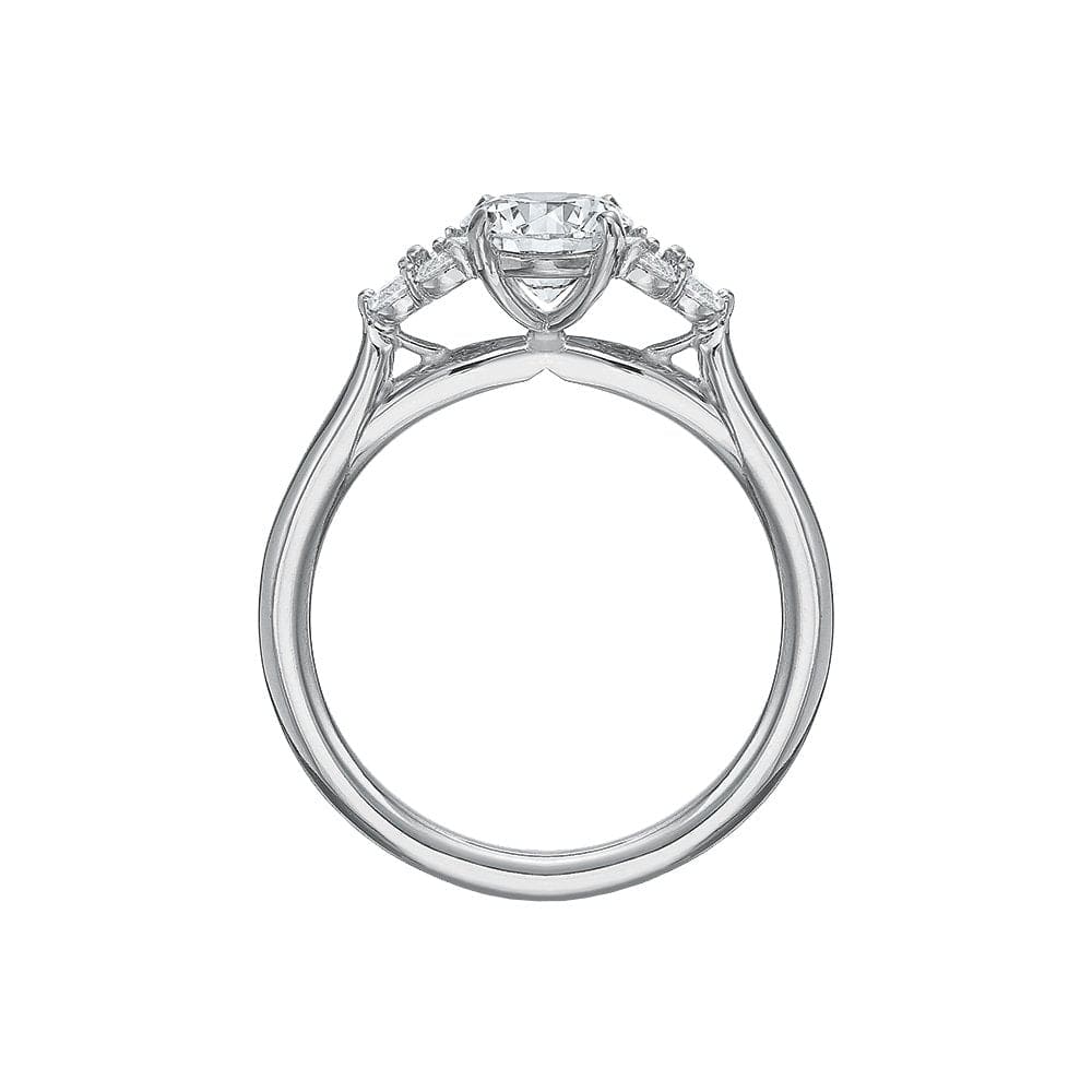 18k white gold/plat 6=0.20ct h si1 br diamond semi mount ring sz 6, 4 prong rd cz center with prong set cluster shoulders and polished shank