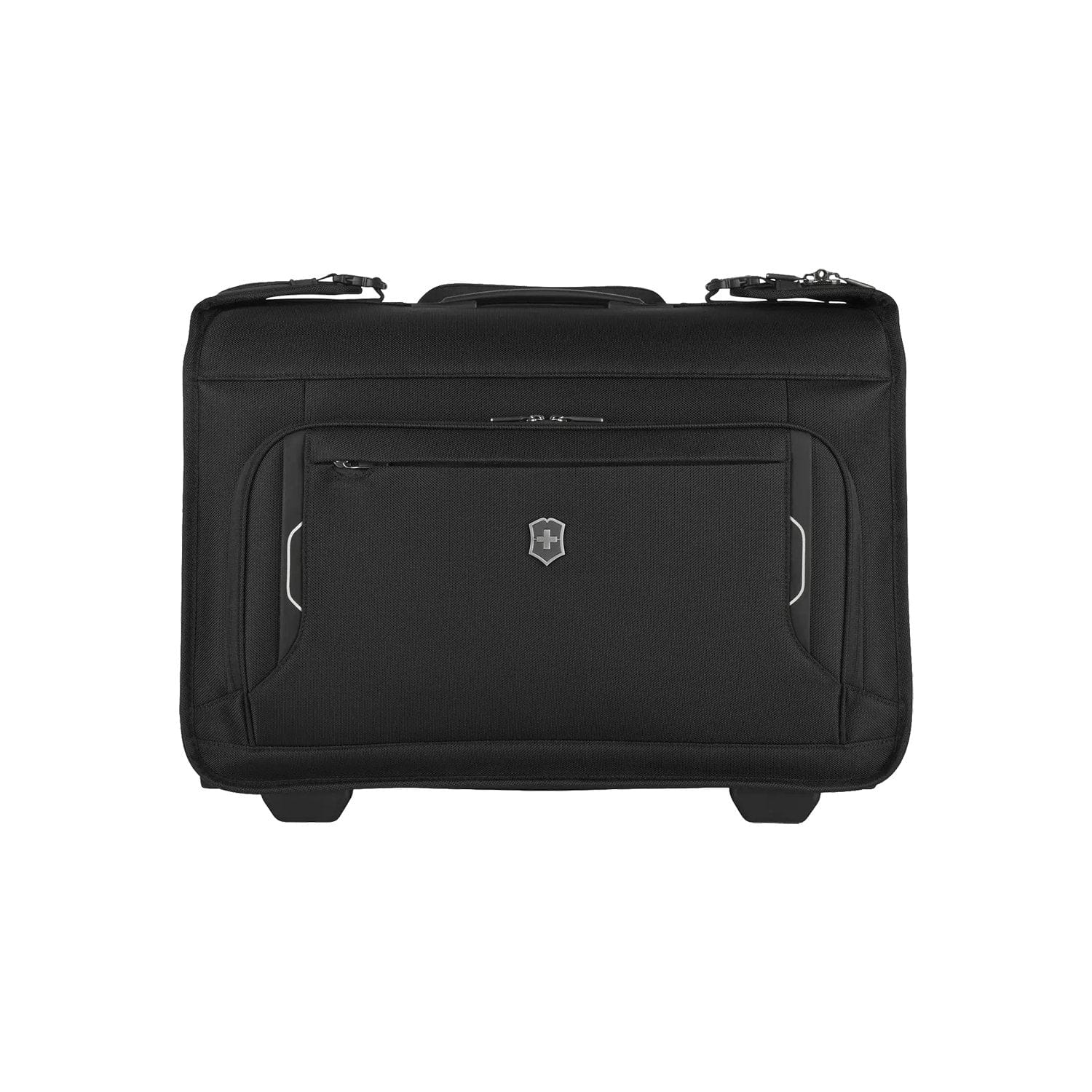 - Convenient, wheeled garment carrier lays flat for easy packing and keeps clothes wrinkle-free
